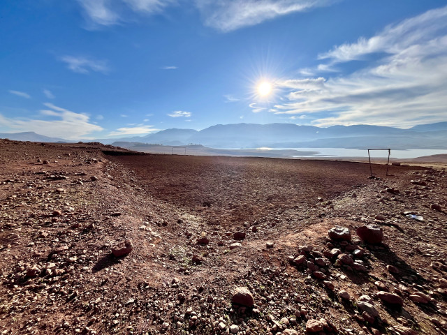 Desert Soccer Field on the Shore of Lake Bin El Ouidane